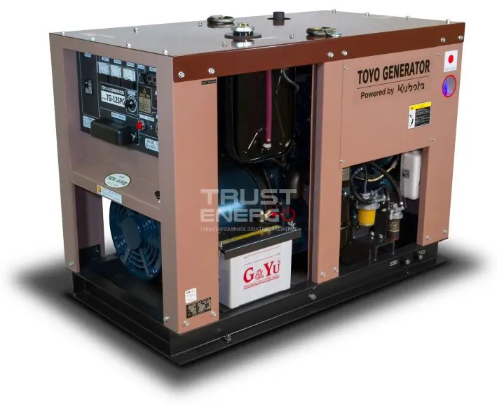 Дизельный генератор Toyo TG-12SPC с АВР номинальной мощностью 9 кВт с двигателем Kubota - отличный электроагрегат демонстрирующий уверенный приём нагрузки как резервный источник питания, так и основной.